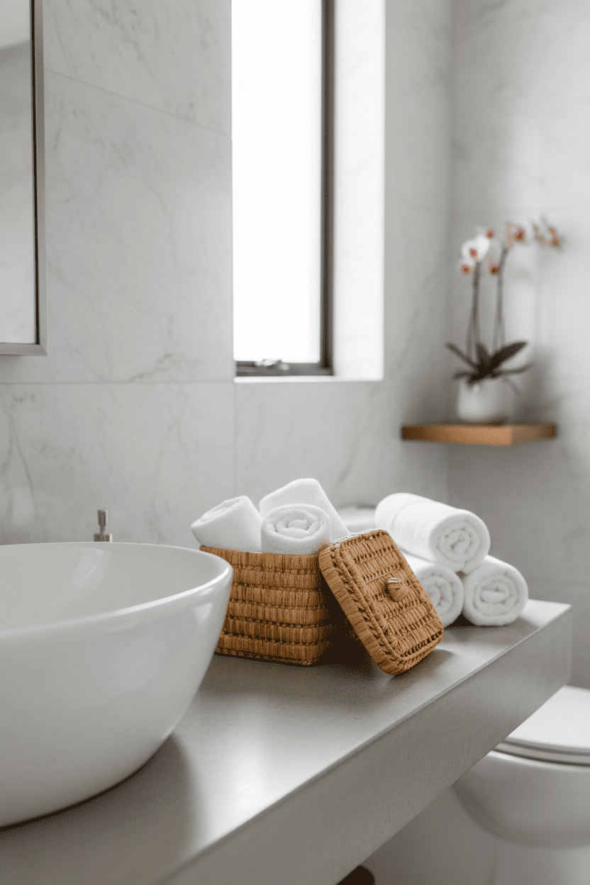 Natural storage box with lid for elegant home organization. Eco-friendly . Perfect for bathroom or bedroom decor.